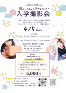 「入学撮影会」となっていますが、「卒業」「卒園」「入学」「入園」「進級」すべてが対象です。