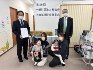 今回の助成は「医療的ケア児を対象とする多機能型重症児デイにおける災害対策品の購入」